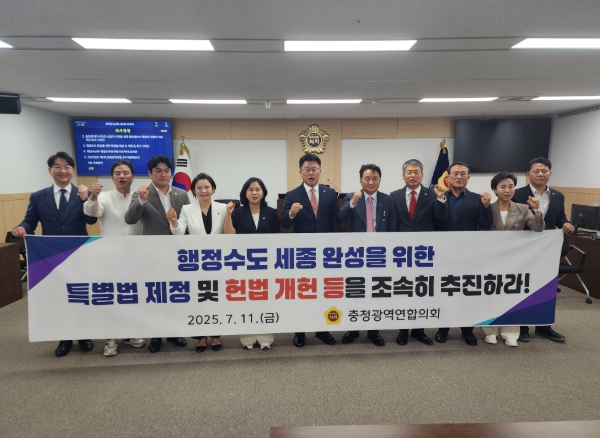 충청광역연합의회는 “행정수도 완성은 수도권 과밀 해소와 국가 균형발전을 위한 중대한 국가적 과제이며, 더 이상 미룰 수 없는 시대적 요청”이라고 강조하며, “정부와 국회가 지방 소멸 등의 국가적 위기를 극복하고 대한민국의 지속가능한 성장을 위해 과감한 결단과 함께 속도감 있는 입법을 추진할 것으로 기대한다”고 밝혔다.