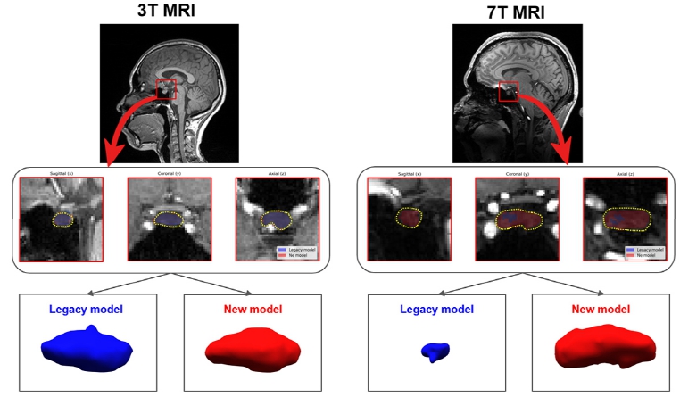 연구팀은 3D heatmap 기반 위치 예측 모델과 nnU-Net 아키텍처 기반 세분화 모델을 결합한 이중 단계 자동화 파이프라인을 제안, 초고해상도 7T MRI 데이터에서도 뇌하수체의 해부학적 경계를 정밀하게 분할하는 데 성공했다.