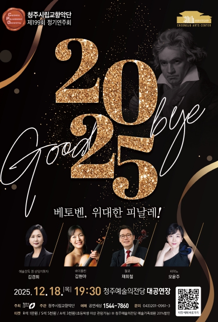 [뉴스스텝] 청주시립교향악단은 오는 12월 18일 오후 7시 30분 청주예술의전당 대공연장에서 제199회 정기연주회 ‘Good bye 2025 – 베토벤, 위대한 피날레!’ 공연을 개최한다.