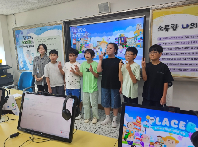 이번 교육은 행정안전부와 플레이스비(주)에서 초등학교 교육용으로 개발한 도로명주소 디지털교과서 등 첨단기술을 활용해 가상의 공간에서 실제 생활공간처럼 동네의 도로명 관련 주소체계를 이해하고 체험해 보는 방식으로 진행됐다.