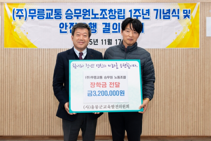 | ▲ “주식회사 무릉교통 승무원 노동조합, 울릉군 학생 위해 장학금 320만원 기탁” |