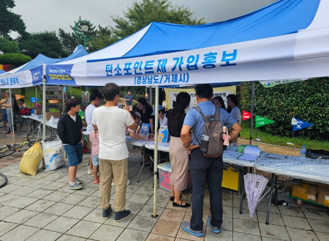 시는 '자전거대행진 10주년 기념 페스타', '제5회 장목면 별빛바다축제', '제3회 맹종죽 힐링음악회', '제14회 둔덕포도한우축제' 행사장을 차례로 찾아 전기·수도·도시가스 절약 방법을 안내하고, 탄소중립포인트제 현장 가입을 지원했다.