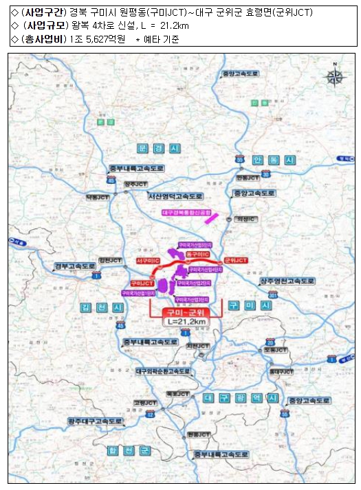 | ▲ 구미-군위 고속도로 사업개요 및 위치도 |