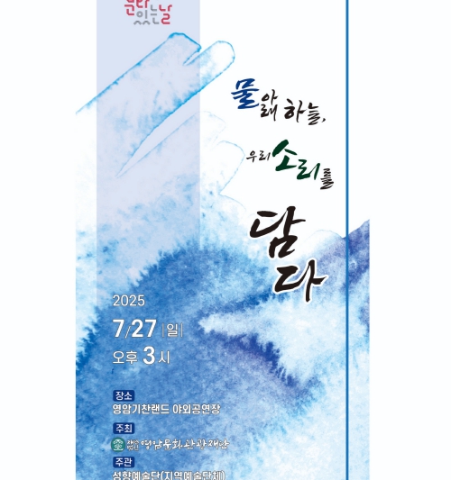 오는 7월 27일 오후 3시, (재)영암문화관광재단은 ‘2025 문화가 있는 날’ 행사지원 사업의 일환으로, 전통예술의 감각을 지닌 성향예술단’(대표: 임봉금)과 함께 야외공연 “물 아래 하늘, 우리 소리를 담다”를 선보인다.