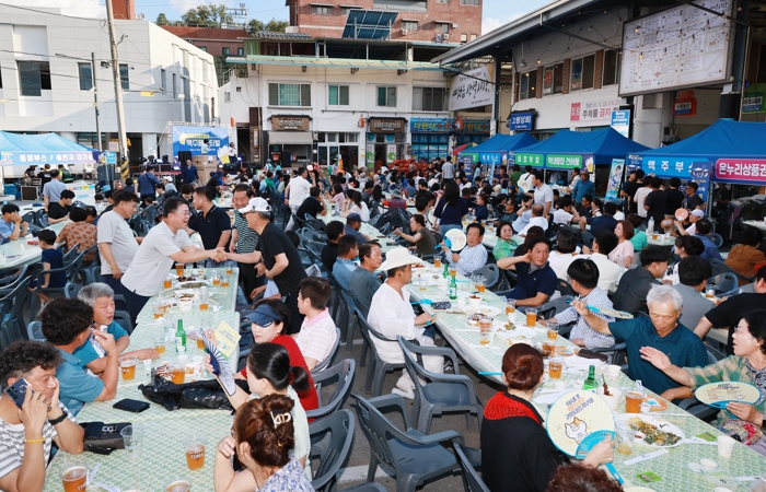 행사의 열기를 끌어올린 것은 곳곳에서 펼쳐진 참여형 이벤트였다. ‘수박 빨리 먹기’에서는 참가자들과 보는 이들이 함박웃음과 함께 환호했고, ‘맥주 브랜드 맞히기’와 ‘맥주병 큰소리로 따기’에서는 응원과 웃음이 뒤섞인 소리가 시장 안을 메웠다. 오후 5시부터 시작된 ‘천원 생맥주’ 판매는 순식간에 소진될 정도로 인기를 모았다.