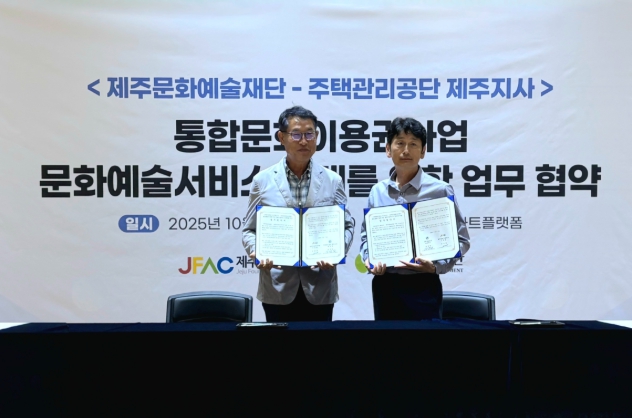 [뉴스스텝] 제주문화예술재단과 주택관리공단 제주지사는 지난 13일 통합문화이용권 사업(문화누리카드)과 연계한 문화예술 서비스 확대를 위해 업무협약을 체결했다.