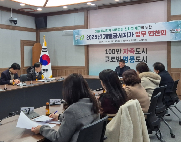 [뉴스스텝] 청주시는 24일 임시청사 소회의실에서 2026년 공시지가 업무추진을 위한 연찬회를 개최했다.