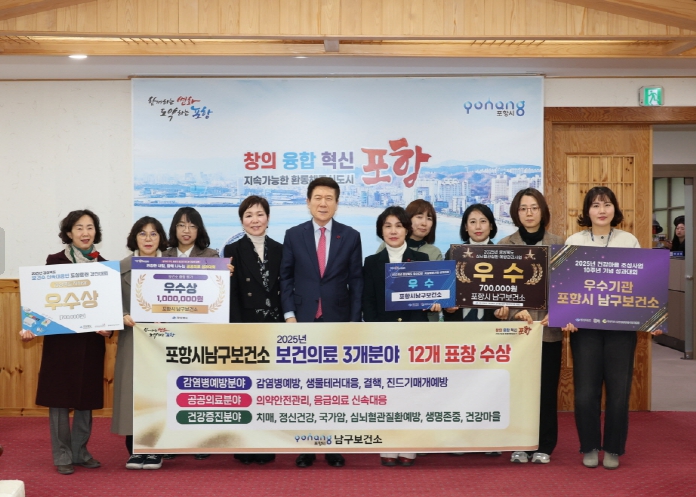 [뉴스스텝] 포항시 남구보건소가 2025년 한 해 동안 보건의료 전 분야에서 탁월한 성과를 거두며, 중앙부처와 경상북도 평가 등에서 총 3개 분야 12개의 상을 휩쓸었다고 23일 밝혔다.