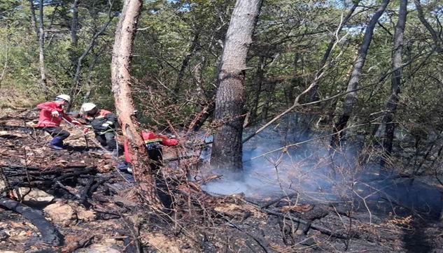 산림당국은 산림청 진화헬기 1대와 지자체 임차헬기 1대를 비롯해 산림재난대응단 등 전문 지상진화인력과 공무원 등 총 34명을 즉시 동원하여 산불이 확산되지 않도록 방화선을 구축하고 진화에 총력을 기울였다.