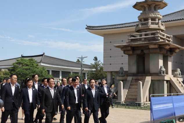 ▲ 김민석 국무총리가 26일 APEC 정상회의 준비상황 점검차 경주 화백컨벤션센터(HICO), 엑스포대공원, 국립경주박물관 등을 방문, 현장을 점검하고 있다.(국무조정실) |