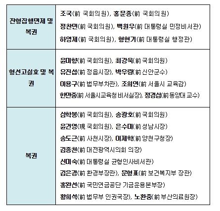 ▲ 정치인, 주요공직자 주요 사면 대상자 |