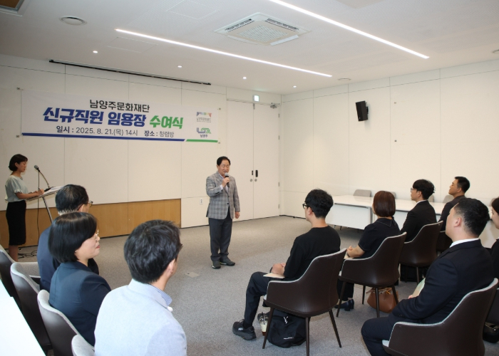 [뉴스스텝] 남양주시는 21일 청렴방에서 남양주문화재단 신규 직원 11명에 대한 임용장 수여식을 개최했다.