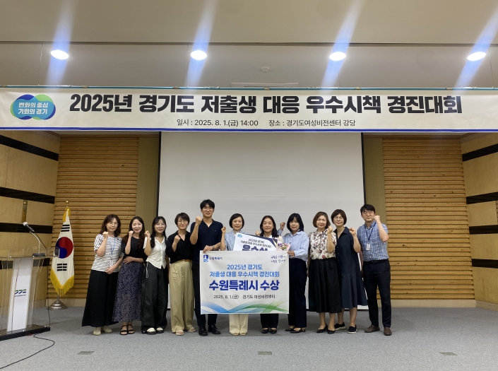 [뉴스스텝] 수원시가 1일 경기도 여성비전센터에서 열린 2025년 경기도 저출생 대응 우수시책 경진대회에서 우수상을 받았다. 상금은 1000만 원이다.