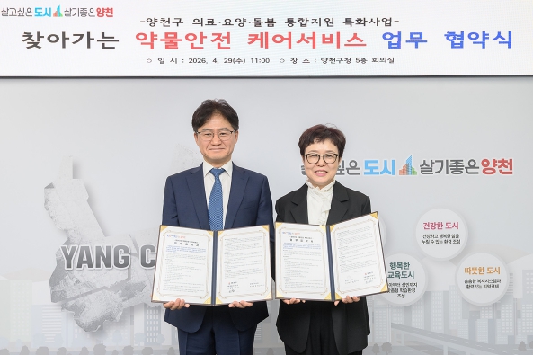 [뉴스스텝] 양천구는 29일 오전 구청 5층 회의실에서 양천구약사회와 ‘찾아가는 약물안전 케어서비스’ 추진을 위한 업무협약(MOU)을 체결했다고 밝혔다. 이번 협약은 약물관리가 필요한 취약계층을 대상으로 약사가 직접 가정을 방문해 맞춤형 서비스를 제공하는 양천구 통합돌봄 특화사업의 일환이다.