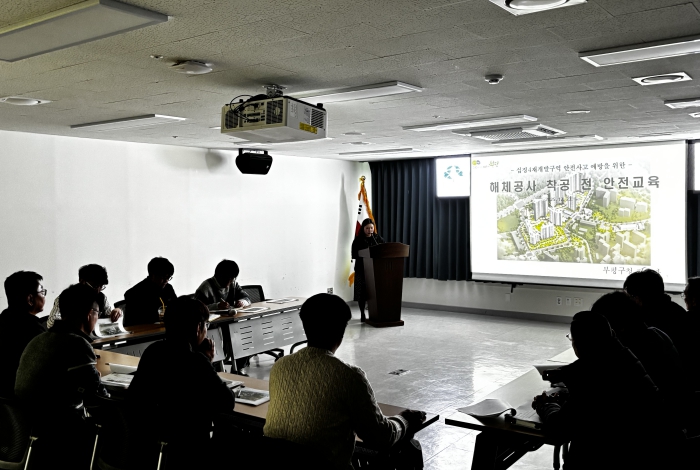 이날 교육 내용은 ▲재개발 해체 현장 사고사례 및 사고원인 분석 ▲사고에 따른 행정조치 사항 등으로 구성됐다.