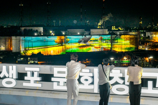 ‘장생포 라이트’는 지난해부터 SK에너지(현 SK이노베이션 울산CLX)와 함께한 민관 협력 사업으로 SK저유탱크 4기를 프로젝터 스크린(투사면)으로 활용한 상설형 미디어파사드 시스템을 구축한 국내 최초 사례다.