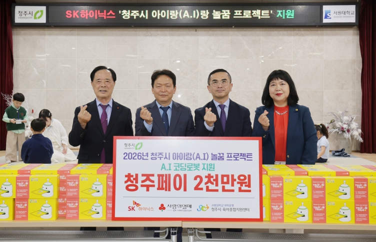 [뉴스스텝] 청주시는 29일 SK하이닉스㈜가 지역 영유아 대상 인공지능(AI) 코딩교육 지원을 위해 2천만원 상당의 청주페이를 청주시육아종합지원센터에 기탁했다고 밝혔다.