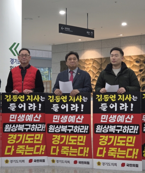 [뉴스스텝] 경기도의회 교육기획위원회 김호겸 의원(국민의힘, 수원5)은 2025년 12월 3일 백현종 경기도의회 국민의힘 대표의원을 중심으로 경기도의회 교육기획위원회 위원 및 교육행정위원회 위원들과 함께 김동연 지사가 팽개치고 있는 경기도 민생예산 복구를 촉구했다.