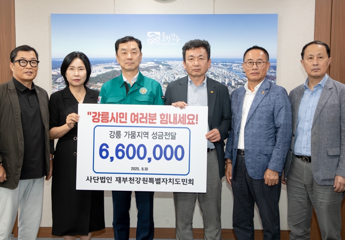 [뉴스스텝] 재부천강원특별자치도민회가 극심한 가뭄으로 재난사태를 선포한 자매도시 강릉시를 돕기 위해 10일 성금 660만 원을 기탁했다.
