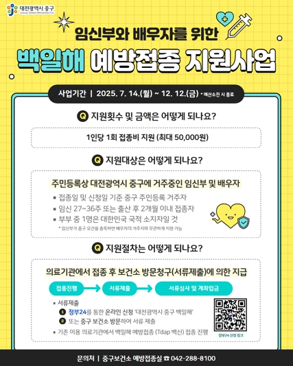 ▲ 대전 중구, 백일해 예방접종비 온라인 지원 확대 |