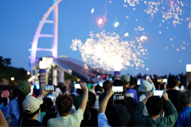 특히, 이 행사의 하이라이트인 불꽃쇼가 펼쳐지자, 어둠이 내린 새연교와 바다 위로 화려한 불빛이 쏟아지며, 물빛과 어우러져 한층 더 환상적이고 낭만적인 분위기를 자아냈다.