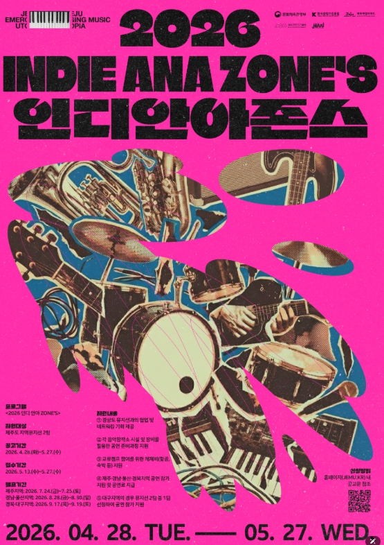 [뉴스스텝] 제주특별자치도와 (재)제주콘텐츠진흥원(원장 강민부)이 제주와 경상권 지역 뮤지션 간 협업과 교류 공연을 위한 프로젝트 '2026 인디 안아 Zone’s'참여뮤지션을 모집한다.