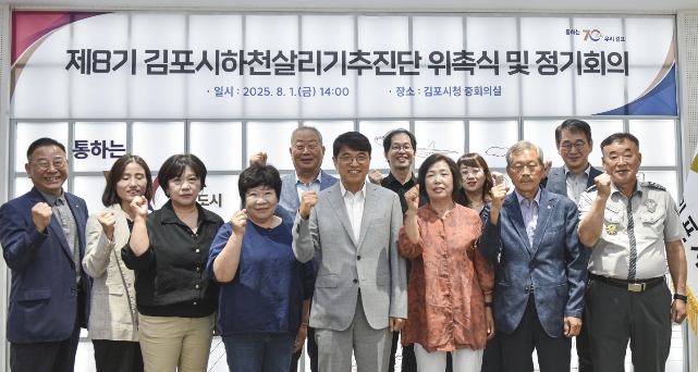 [뉴스스텝] 김포시는 지난 8월1일 김포시 하천살리기 추진단 제8기 단원 8명을 위촉했다고 밝혔다. 그리고, 위촉식에 이어 ‘2025년 상반기 운영위원회’에서 박남순 단장을 재선임하고, 김명숙 부단장을 새롭게 선임했다.