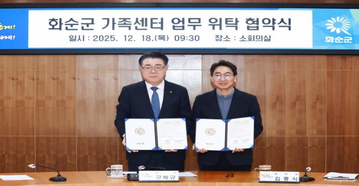[뉴스스텝] 화순군은 18일 화순군청 소회의실에서 (사)다사랑건강가정복지협회(회장 김종식)와 화순군 가족센터 업무 위탁 협약을 체결하고, 가족 지원 정책의 안정적 추진과 지역사회 돌봄 기반 확충에 나섰다고 밝혔다.