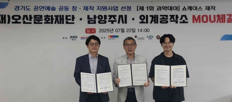 [뉴스스텝] 남양주시는 지난 22일 ‘2025년 경기도 공연예술 공동 창·제작 지원사업’의 일환으로, 오산문화재단 및 예술단체 외계공작소와 함께 연극 ‘제1회 과학데이’ 공동제작 협약을 체결했다고 24일 밝혔다.