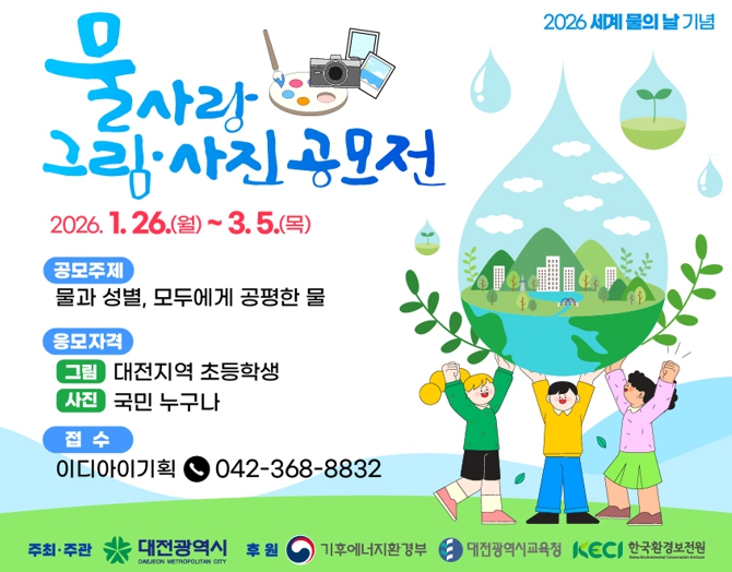 이번 공모전은 유엔(UN)이 2026년 정한 ‘물과 성별(젠더), 모두에게 공평한 물’을 주제로 누구나 안전한 물을 누리는 공평한 물 복지를 실현하고, 기후위기 상황에서 생활 속 물 환경 보전 실천 의지를 확산하기 위해 마련됐다.