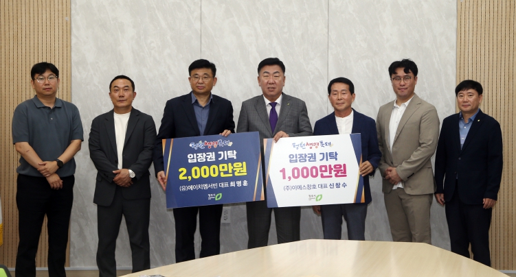 ㈜이에스창호는 청원생명축제 입장권 2,000매(1,000만원 상당)를, (유)에이치엠서빈은 4,000매(2,000만원 상당)을 각각 기탁했다.