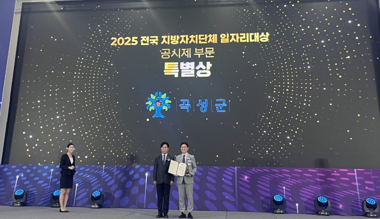[뉴스스텝] 전남 곡성군이 지난 30일 충북 청주 오스코 컨벤션센터에서 열린 고용노동부 주관 전국 지방자치단체 일자리 대상 시상식에서 일자리 공시제 부문 특별상을 받는 영예를 안았다.