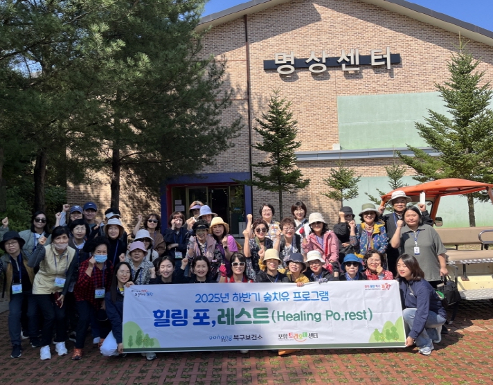 [뉴스스텝] 포항시 북구보건소 트라우마센터는 트라우마 치유와 회복을 돕기 위해 1일 경북 영주 국립산림치유원에서 ‘힐링 포,레스트(Healing Po,rest)’ 하반기 숲치유 프로그램을 진행했다.