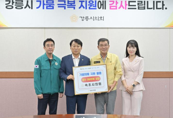 [뉴스스텝] 속초시의회는 12일 강릉시의회를 방문, 강릉시 가뭄 위기 극복을 위해 350만원 상당의 생수를 기탁했다.