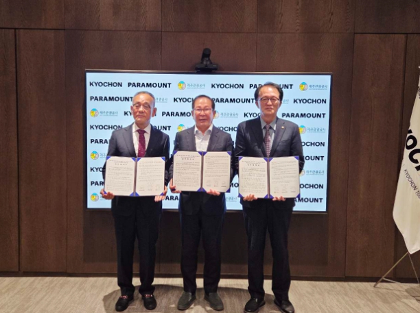 [뉴스스텝] 제주관광공사(사장 고승철)는 지난 25일 경기도 성남시에 위치한 교촌에프앤비 본사에서 차별화된 제주 관광·문화 기반의 신규 콘텐츠 개발과 다양한 협력사업 추진을 위해 교촌에프앤비(대표이사 송종화), 파라마운트(대표 안병기)와 3자 업무협약을 체결했다고 26일 밝혔다.