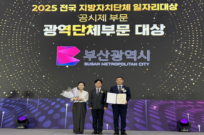 [뉴스스텝] 부산시는 오늘(30일) 오후 2시 청주오스코에서 열린 '2025 전국 지방자치단체 일자리대상' 시상식에서 '공시제 부문' 광역단체 대상(국무총리상)과 '우수사업 부문' 우수상(장관상)을 각각 수상했다고 밝혔다.