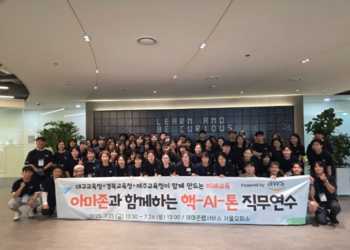 [뉴스스텝] 대구시교육청은 7월 25일부터 26일까지 2일간 아마존 웹 서비스 서울본사에서 대구·경북·제주 교육청 교사 각 20명씩 총 60명을 대상으로 ‘아마존과 함께하는 핵-AI-톤 직무연수’를 개최한다.