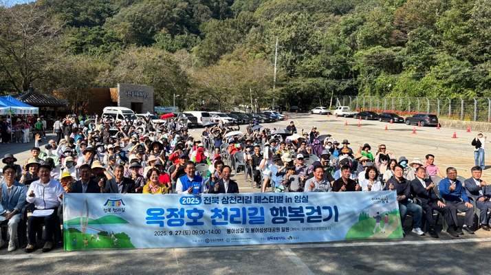 [뉴스스텝] 옥정호의 절경을 배경으로 탐방객들과 함께 걷는 ‘2025 전북 삼천리길 페스티벌 Festival in 임실 – 옥정호 천리길 행복 걷기’ 행사가 27일 임실군 붕어섬 생태공원에서 열렸다.