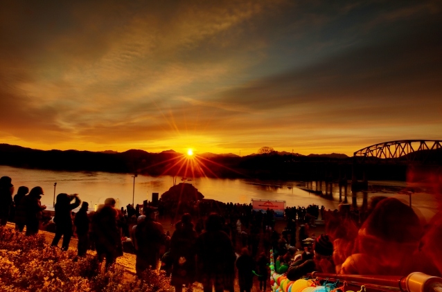 병오년 새해 첫날, 소원을 들어준다는 명소 ‘솥바위’에 새해 희망을 품은 해맞이객들의 발길이 이어졌다. 의령군 정암철교 아래에 자리한 솥바위 일원은 일출을 보기 위해 모여든 시민들로 이른 아침부터 활기를 띠었다.