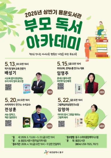 박희조 동구청장은 “부모 독서 아카데미는 동구 도서관의 대표 프로그램으로 많은 주민들의 큰 호응을 얻고 있는 사업”이라며 “급변하는 교육 환경 속에서 부모의 역할을 함께 고민하고, 가족이 함께 성장하는 뜻깊은 시간이 되길 바란다”고 말했다.