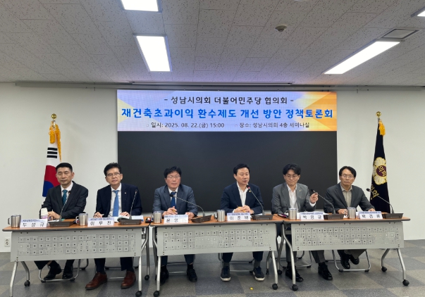 [뉴스스텝] 성남시의회 더불어민주당협의회는 22일, 성남시의회 4층 세미나실에서 '재건축초과이익 환수제도 개선 방안 정책토론회'를 개최했다. 이번 토론회는 재건축초과이익 환수제도의 현황과 문제점을 진단하고, 공정하고 지속가능한 도시 재건축을 위한 제도 개선 방향을 모색하기 위해 마련됐다.