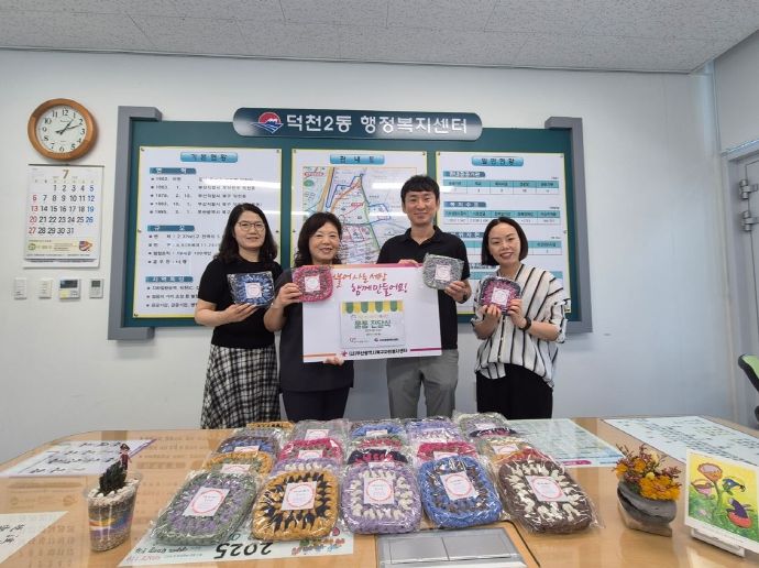 [뉴스스텝] 부산 북구 덕천2동 행정복지센터(동장 문옥희)는 지난 7월 27일, 부산광역시북구자원봉사센터 러브핸드메이드봉사단(회장 장계남)으로부터 정성스럽게 제작한 냄비받침대 30여 개를 기탁받았다고 밝혔다.