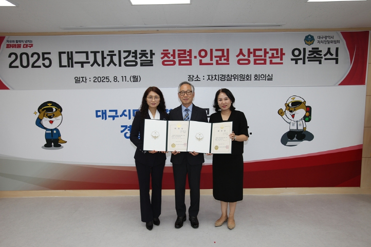 위원회는 8월 11일, 대구 자치경찰관의 청렴성 제고와 인권 보호를 위해 활동해 온 조은희 변호사와 김혜현 변호사를 청렴·인권 상담관으로 재위촉하고, 위촉장을 수여했다.