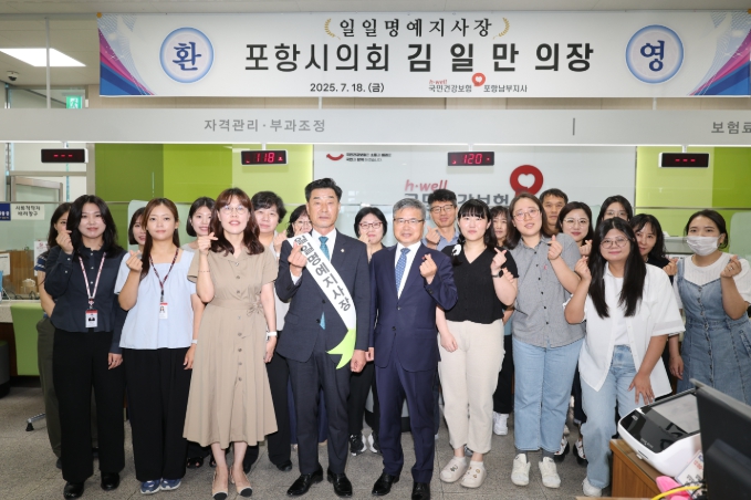 김 의장은 건강보험공단 포항남부지사의 운영 현황을 비롯해 건강보험 제도 및 주요 현안에 대해 청취하고, 공단 민원실을 방문한 민원인을 직접 응대하며 건강보험 업무에 대한 시민들의 목소리와 현장 직원들의 애로사항을 청취했다.