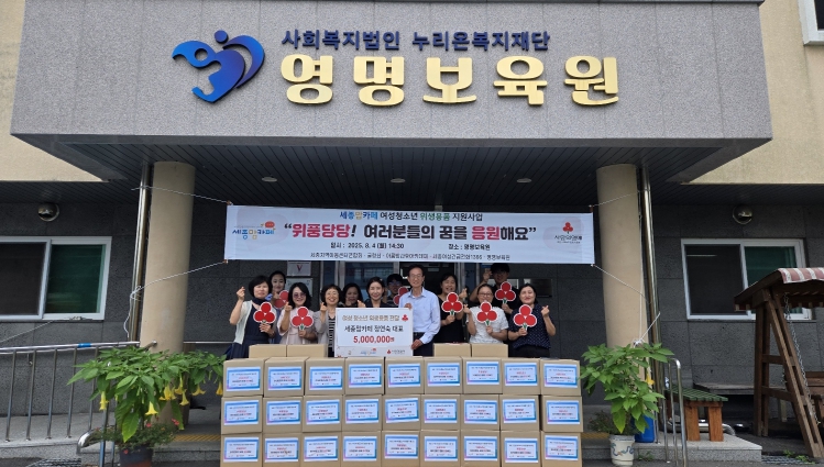 세종사회복지공동모금회는 8월 4일 14시 30분 세종특별자치시 연서면 영명보육원에서 정연숙 세종맘카페 대표, 이희정 세종모금회 사무처장, 이권희 영명보육원장, 변은실 세종지역아동센터연합회장과 지역아동센터장, 최안나 세종여성긴급전화1366센터장, 굴렁쇠‧아름방과후아카데미 관계자 등이 참석한 가운데 ‘정연숙 세종맘카페 대표 500만원 상당 여성청소년 위생용품 전달식’을 가졌다.