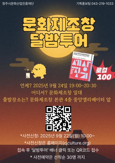 [뉴스스텝] 청주시문화산업진흥재단이 22일 오전 10시부터 ‘문화제조창 달밤투어’ 9월의 두 번째 투어객 모집에 들어간다.