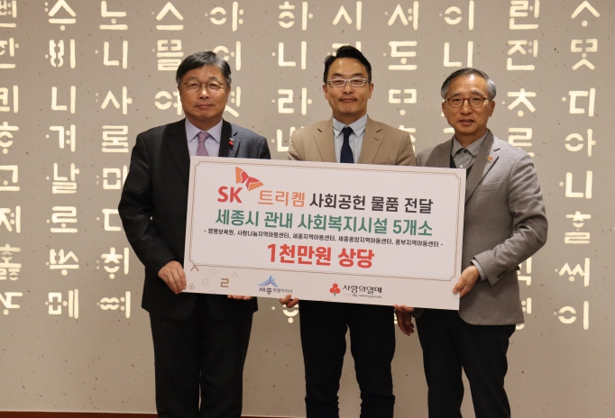 한편 SK트리켐은 세종시의 어려운 이웃을 위한 다양한 사회공헌 활동을 펼치고 있다. 인재육성 장학금 지원 및 다문화가정 조식지원 사업, 장애인 및 노인세대를 위한 환경개선사업 등 지역 사회에서 기업의 사회적 책임을 다하며 나눔문화를 선도하고 있다.