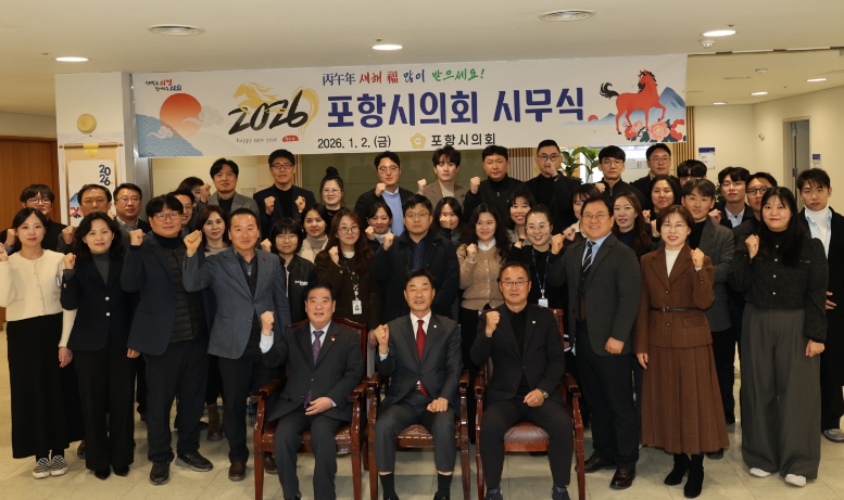 [뉴스스텝] 포항시의회가 2일 오후 시의회 4층에서 2026년도 시무식을 개최했다.