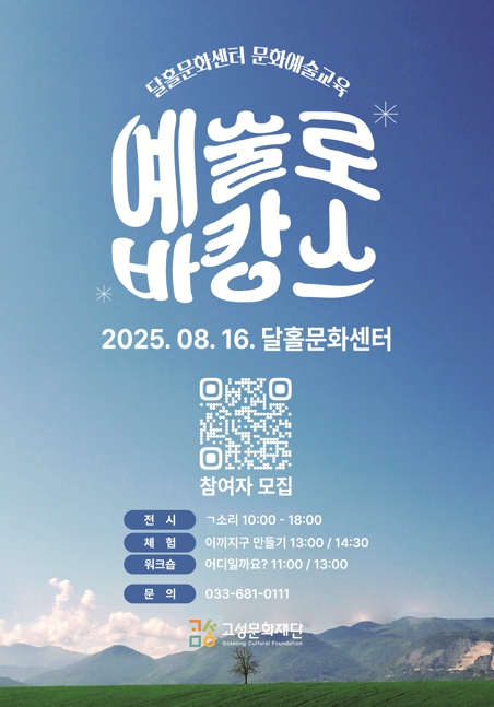 참여 신청은 고성군민을 포함해 누구나 가능하며, 8월 6일부터 14일까지 온라인을 통해 선착순으로 접수받는다. 모든 프로그램은 무료로 운영되며, 신청 링크는 고성문화재단 누리집과 SNS 채널에서 확인할 수 있다.