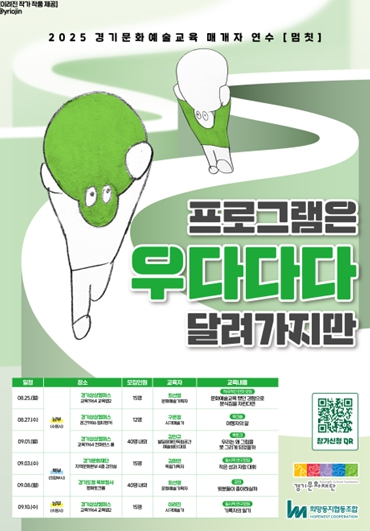 연수 참여 신청은 8월 4일부터 17일까지로 구글 폼을 통해 가능하며, 참여 확정 안내는 접수 마감 후 개별 안내 예정이다. 참여 비용은 무료이며, 2회차 이상 중복 신청도 가능하다. 자세한 내용은 경기문화재단(ggcf.kr) 및 경기문화예술교육지원센터 누리집 또는 SNS 채널에서 확인할 수 있다.